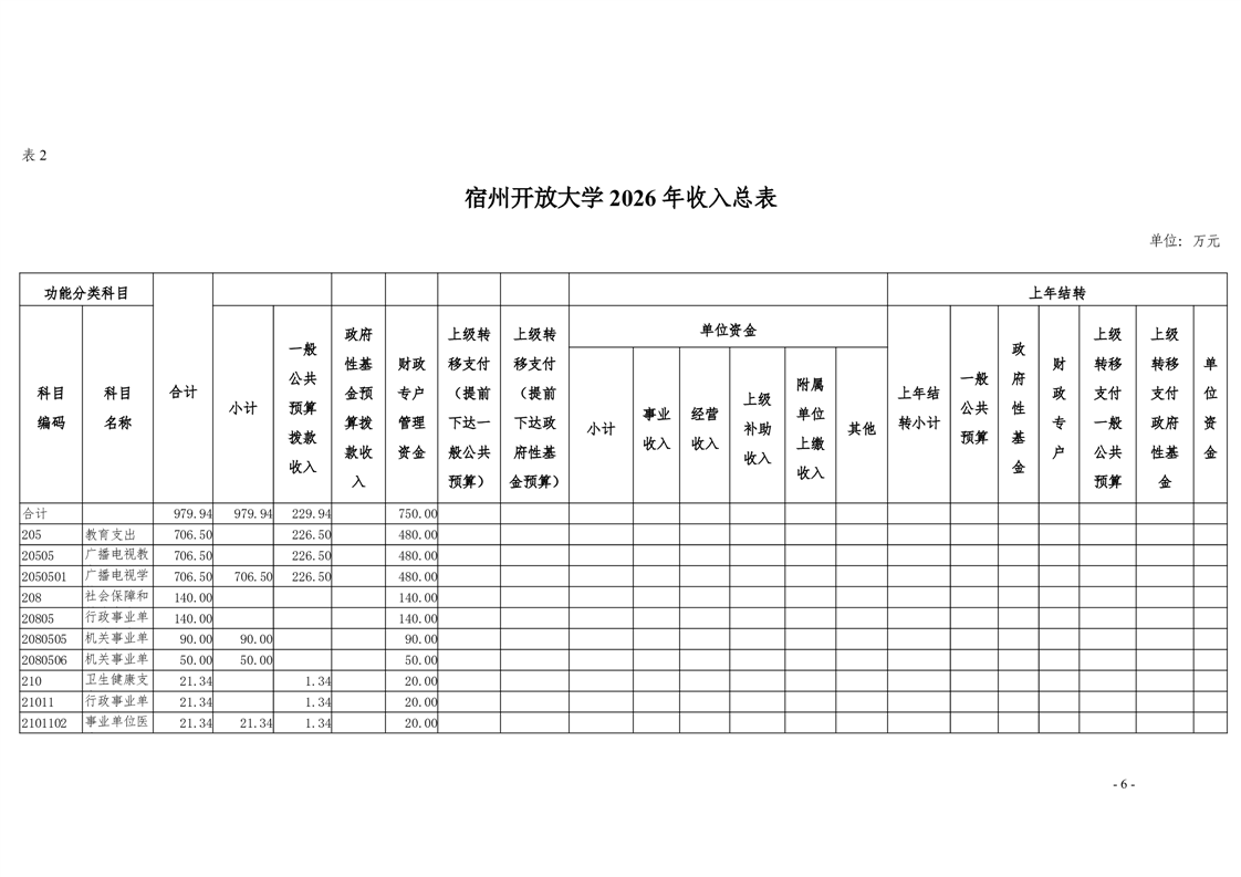宿州开放大学2026年度预算公开